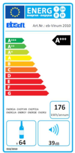 Energieaufkleber für Weinkühler und Kühlschränke. Der wiederablösbare Kleber garantiert ein Rückstandsfreies Entfernen des Labels